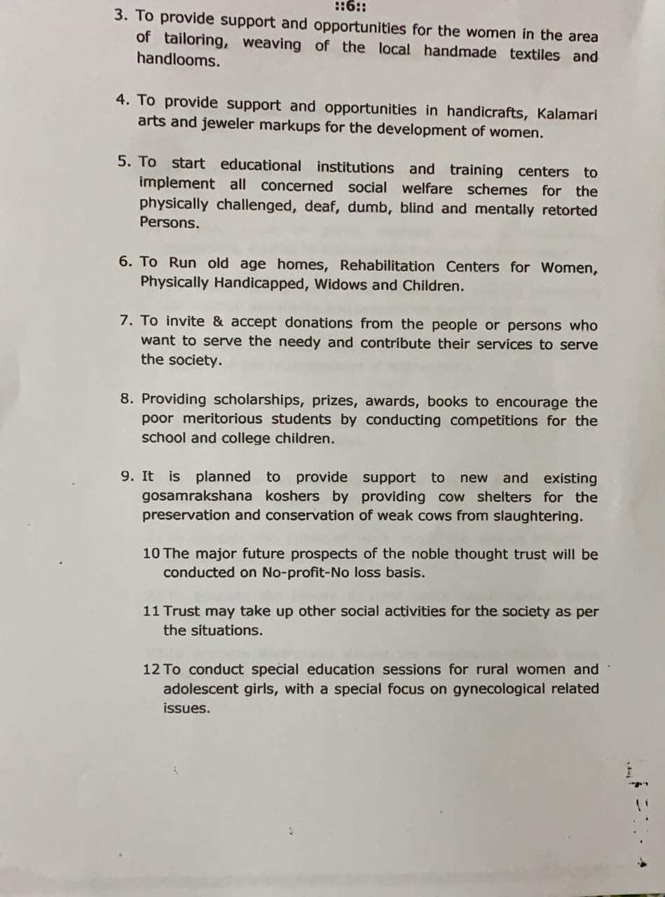 Charitable Trust is formed to do all Service Activities for poor and needy persons in Educational support, Medical aid, Health Awareness and cancer screening programmes,Spiritual activities to promote & protect our Heritage & Culture.